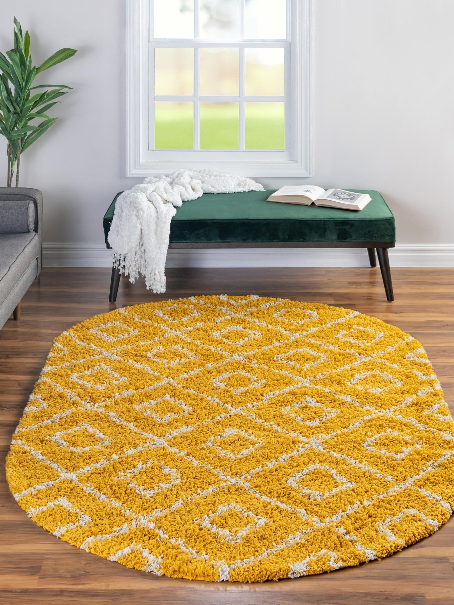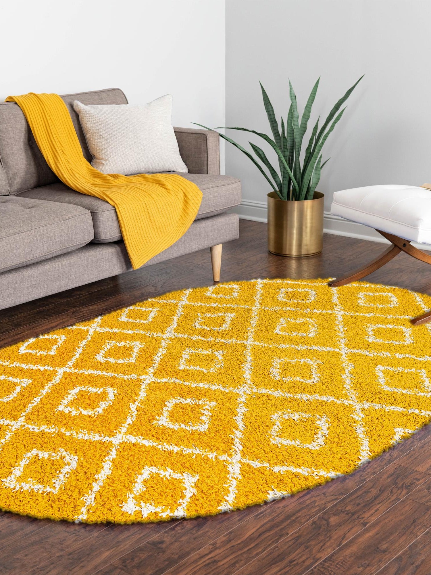 Yellow 4' x 6' Trellis Shag Oval Area Rug Thick Soft Touch ...