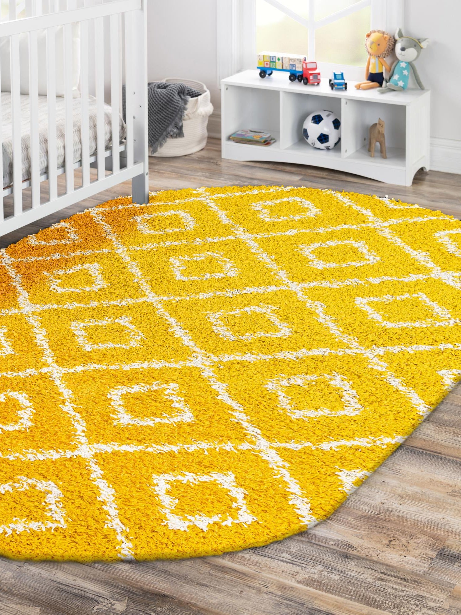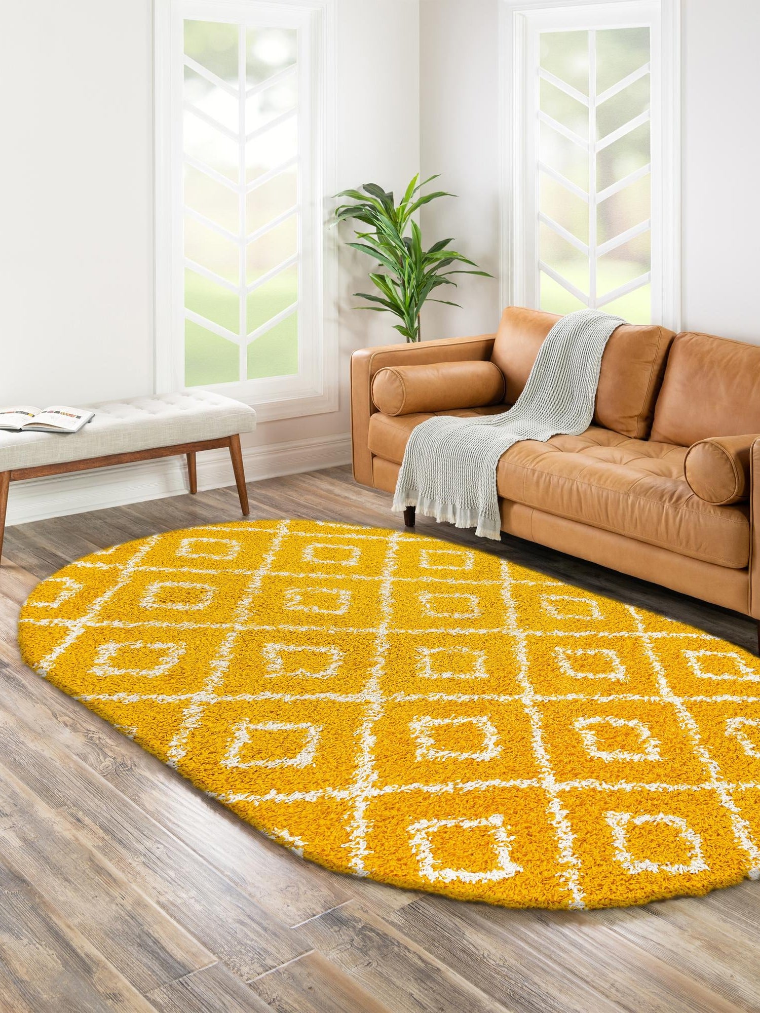 Yellow 4' x 6' Trellis Shag Oval Area Rug Thick Soft Touch Fluffy & Plush Shaggy Pile