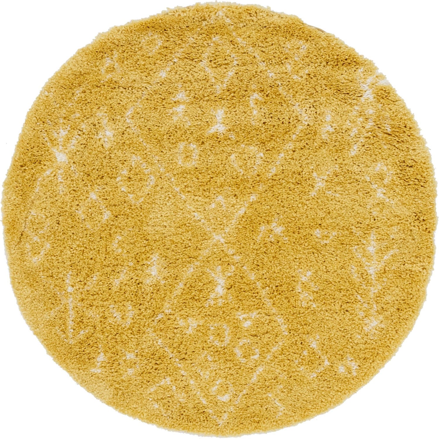 Yellow 5' 1 x 5' 1 Rabat Shag Round Area Rug Thick Soft Touch Fluffy & Plush Shaggy Pile