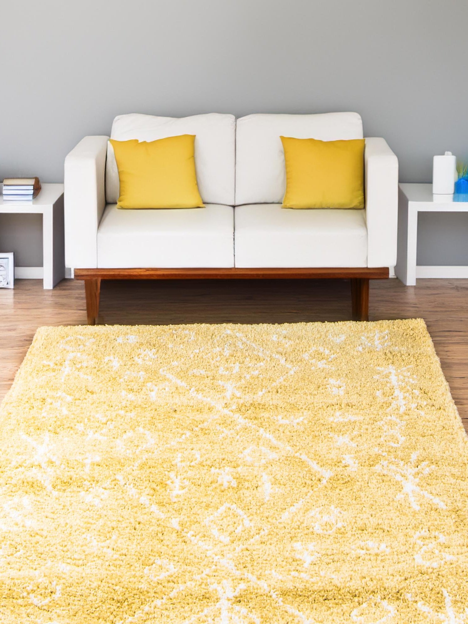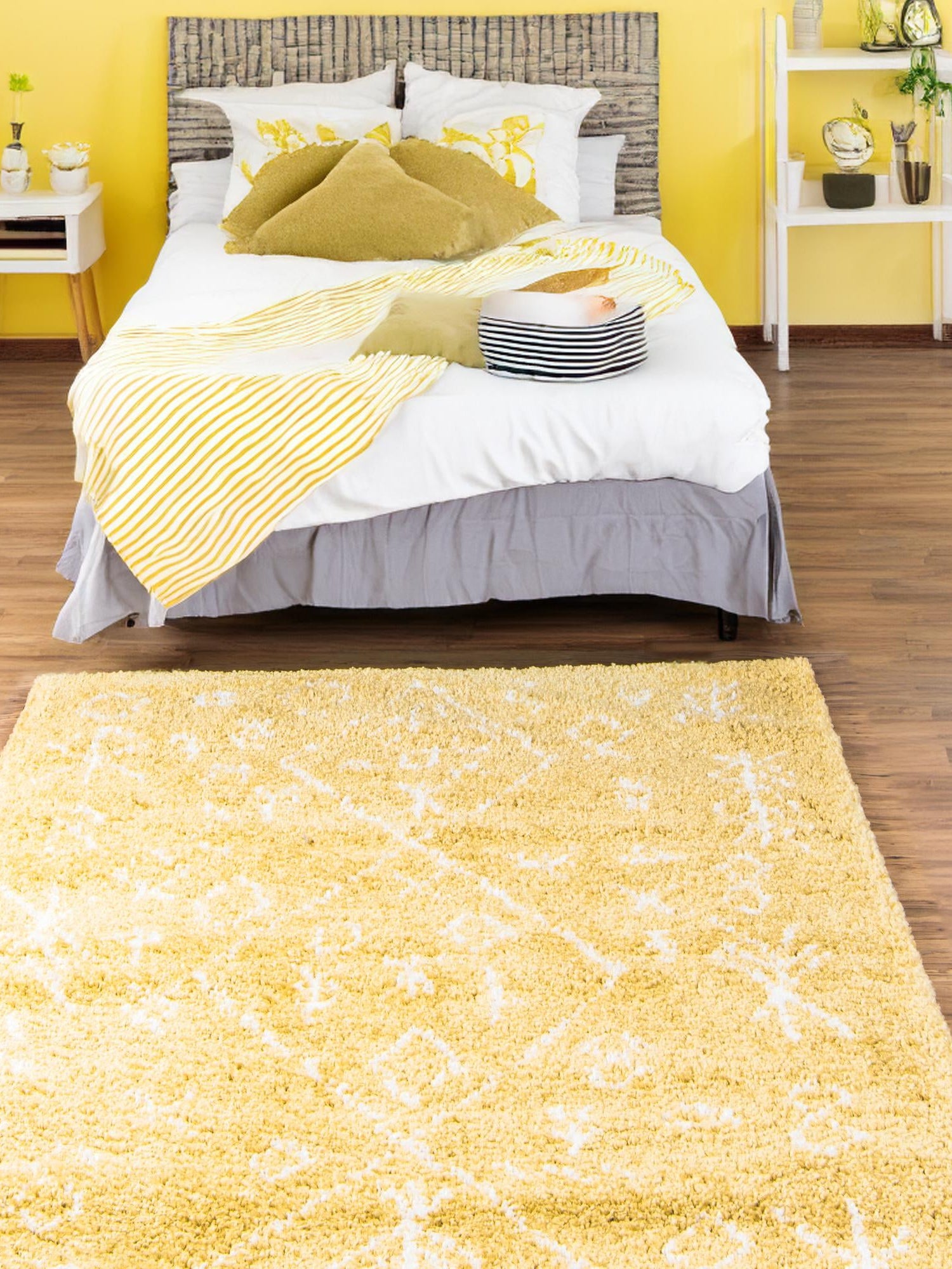 - Vibrant Color Choice: The eye-catching yellow color of this rug adds a bright and cheerful touch to any room. It serves as a stunning focal point, bringing warmth and vibrancy to your space. This rug complements modern and geometric designs, making it an excellent choice for contemporary homes.