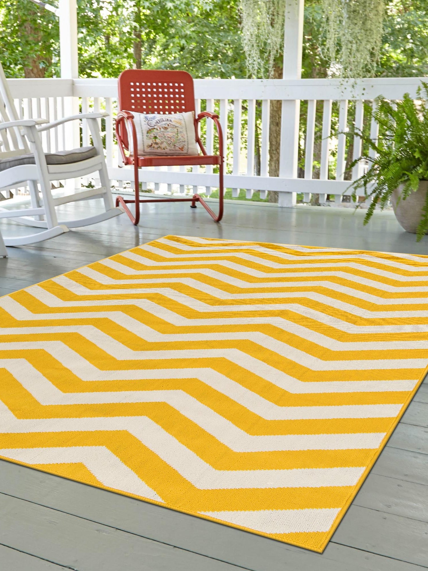 Yellow 5' 3 x 8' Outdoor Coastal Rectangle Area Rug Weather Resistant for Patio, Deck, Terrace, Balcony, Porch