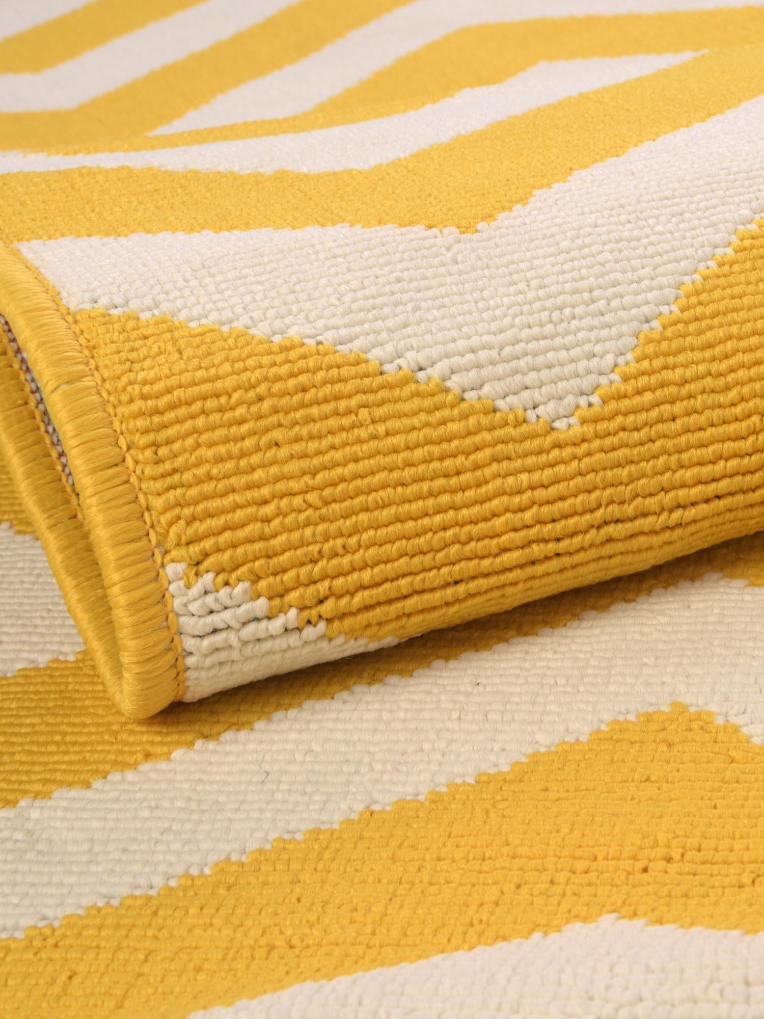 - Vibrant Yellow Color: Adorned in a lively yellow hue, this rug instantly brightens any outdoor area. The eye-catching color not only enhances your decor but also sets a cheerful tone for gatherings and relaxation. Transform your outdoor living space into a vibrant oasis with this stunning addition.