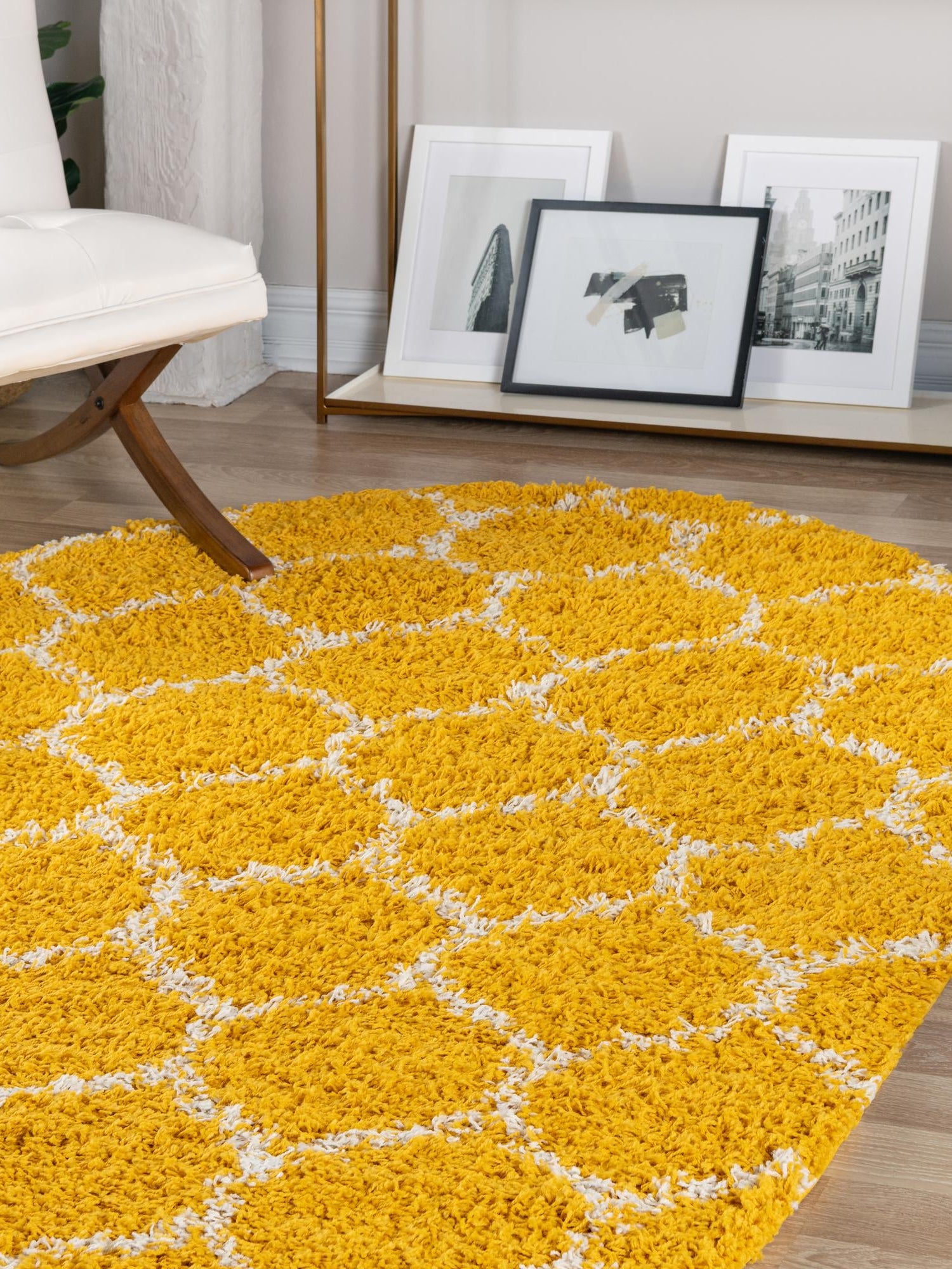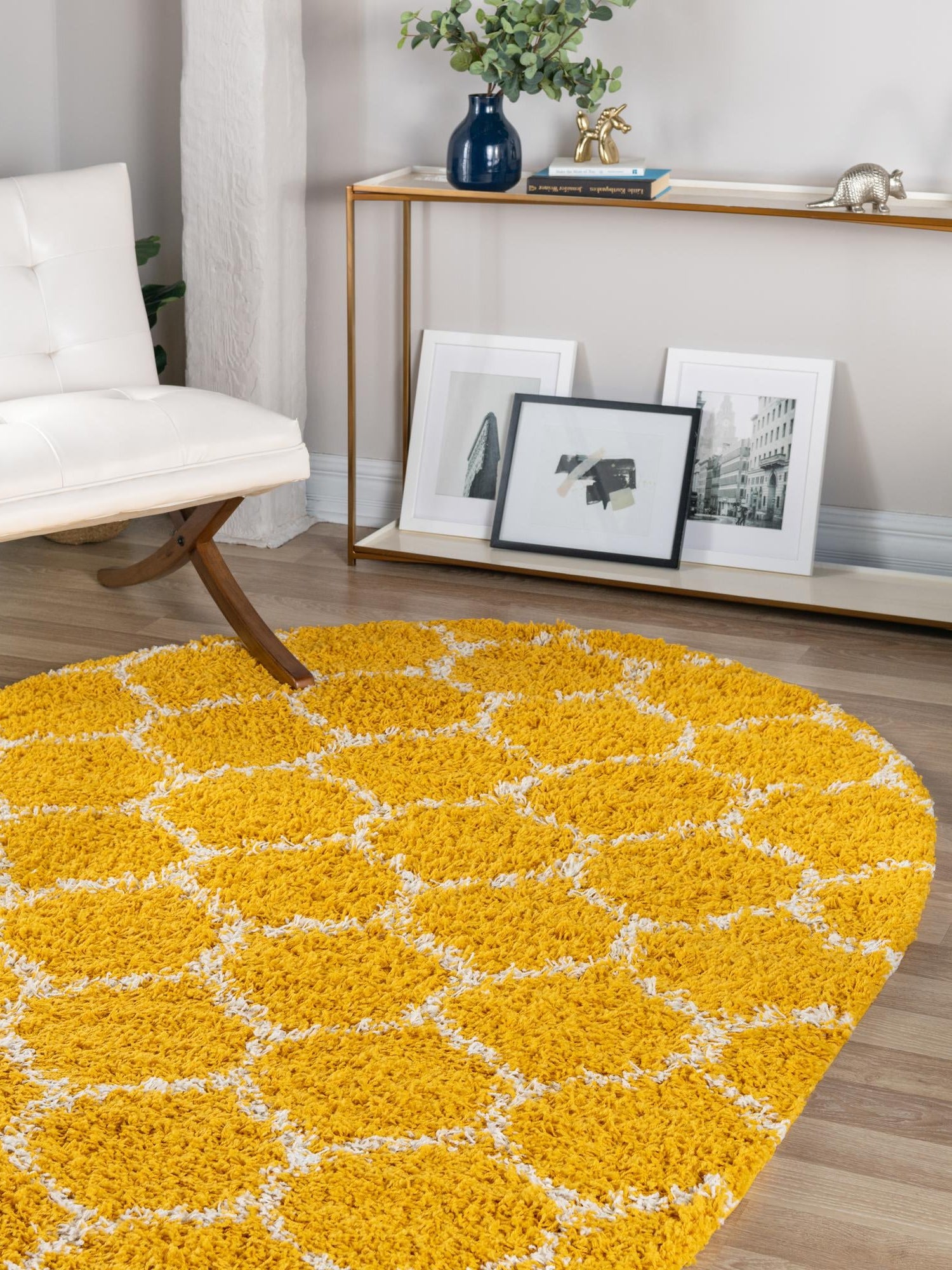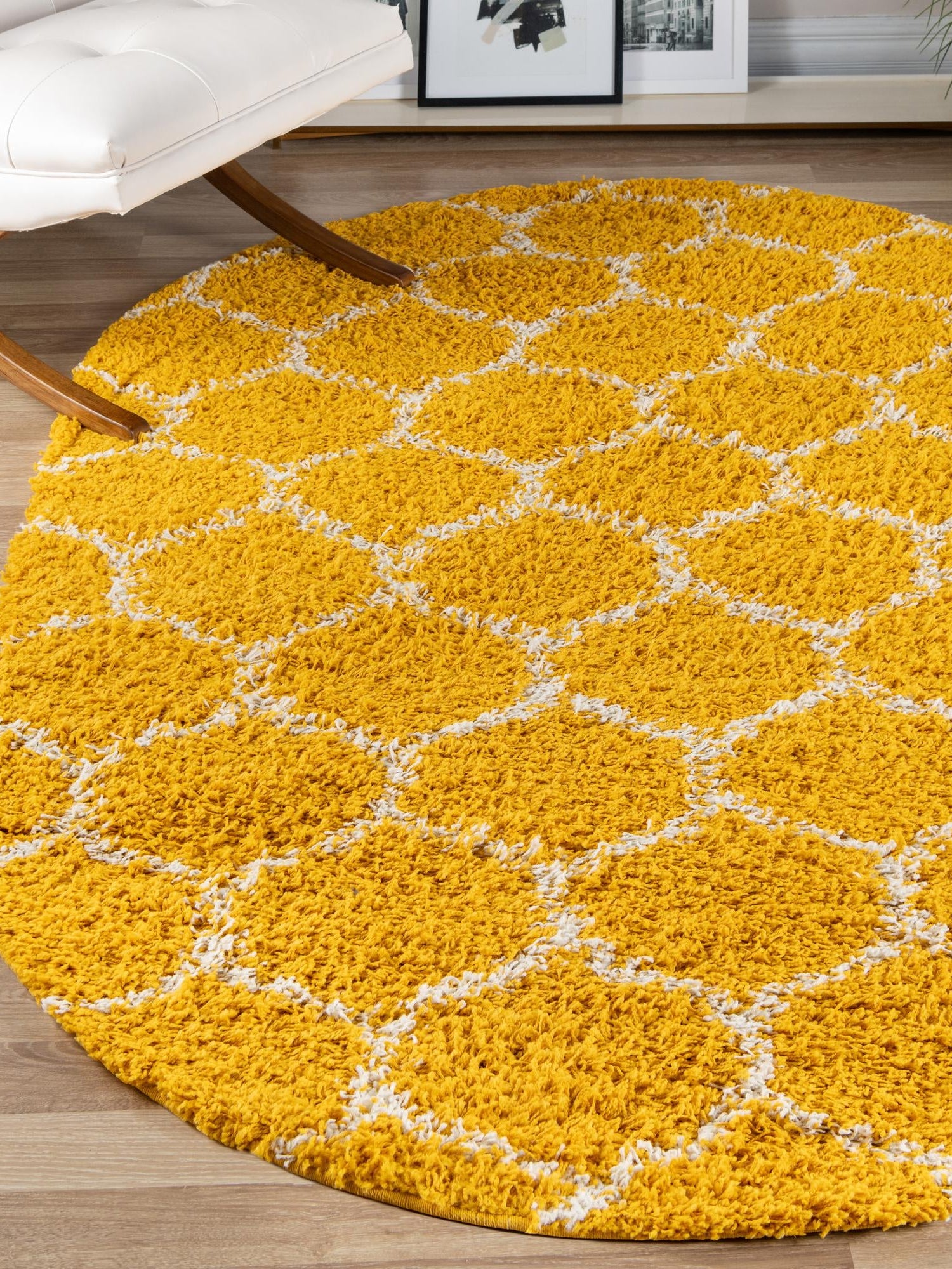 Yellow 5' 3 x 8' Trellis Shag Oval Area Rug Thick Soft Touch Fluffy & Plush Shaggy Pile