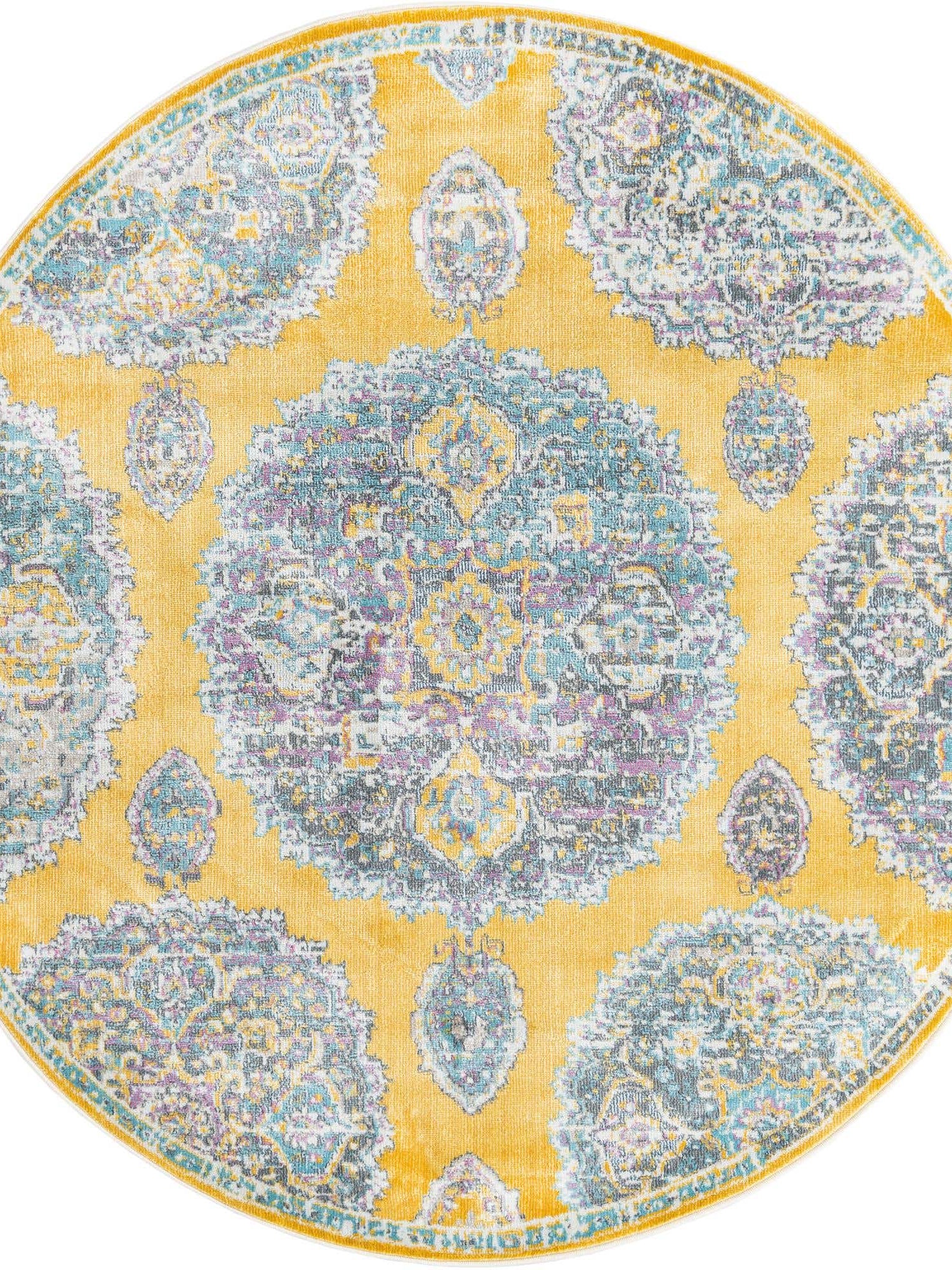 Yellow 5' 5 x 5' 5 Paragon Round Area Rug 100% Polypropylene Colorful Vivid Boho Style Modern Carpet for Unique Interiors