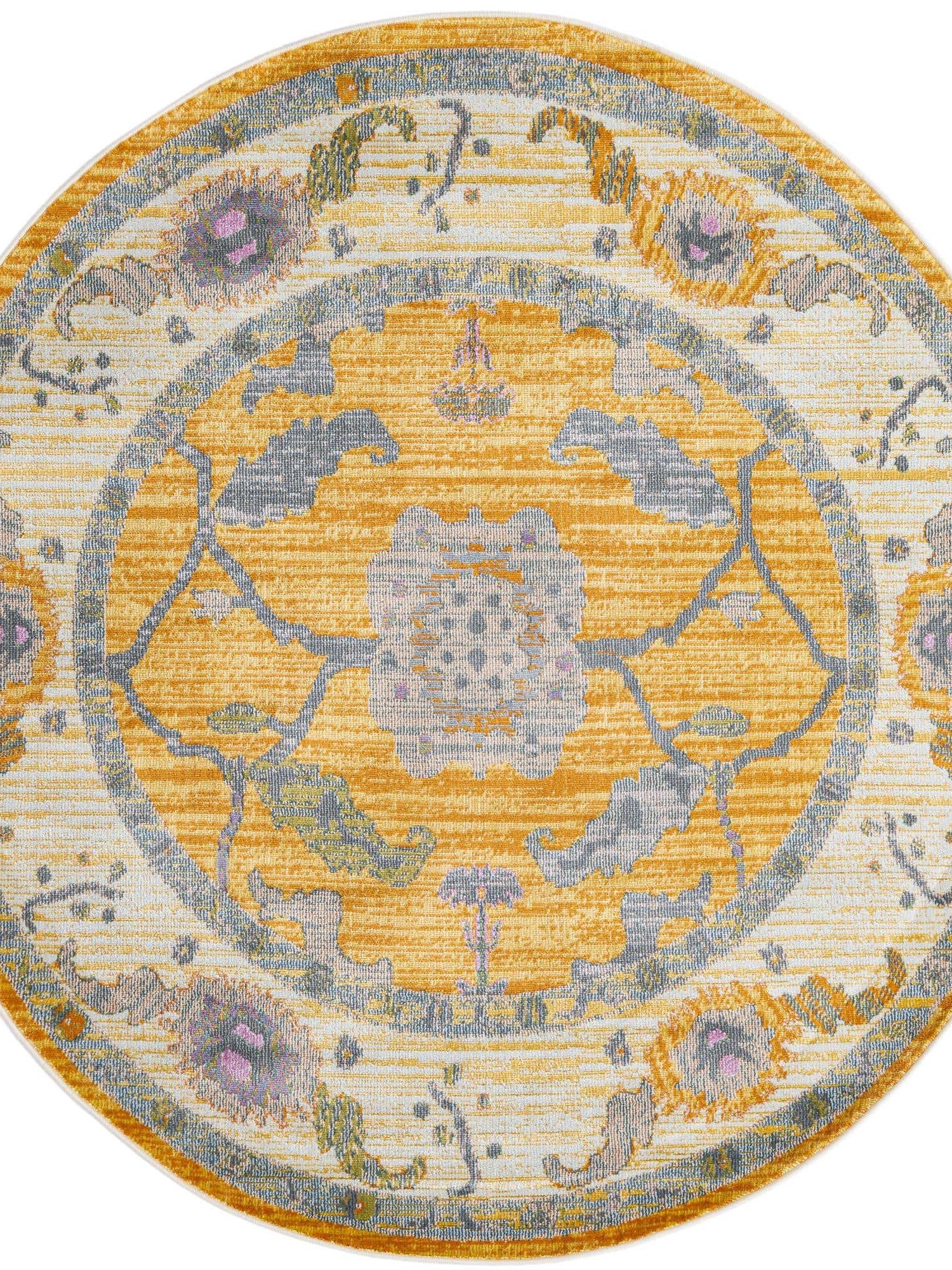 Yellow 5' 5 x 5' 5 Paragon Round Area Rug 100% Polypropylene Colorful Vivid Boho Style Modern Carpet for Unique Interiors