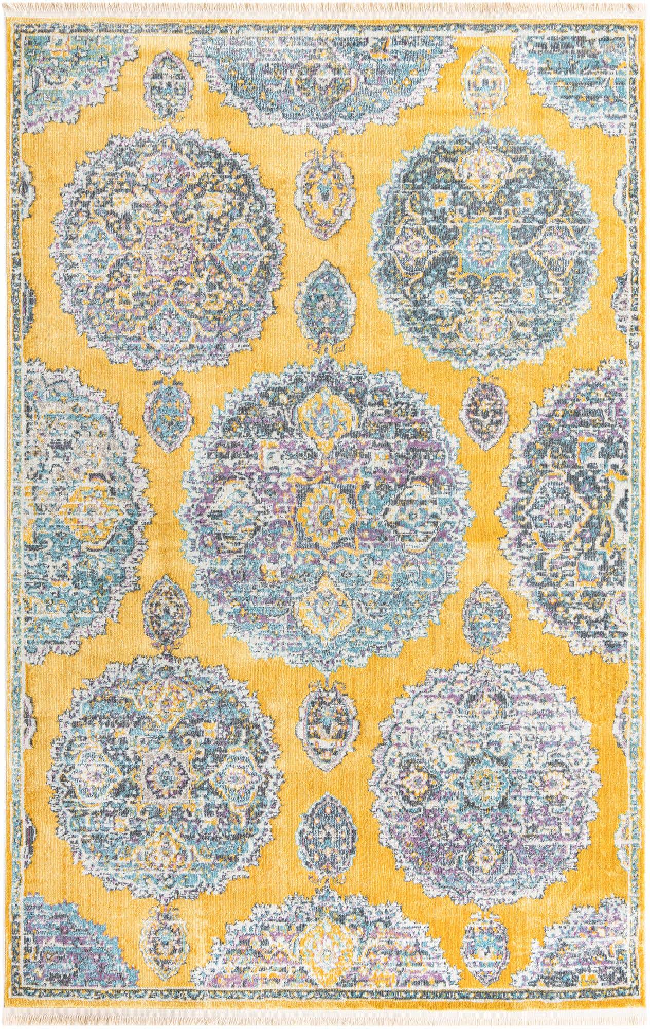 Yellow 5' 5 x 8' Paragon Rectangle Area Rug 100% Polypropylene Colorful Vivid Boho Style Modern Carpet for Unique Interiors