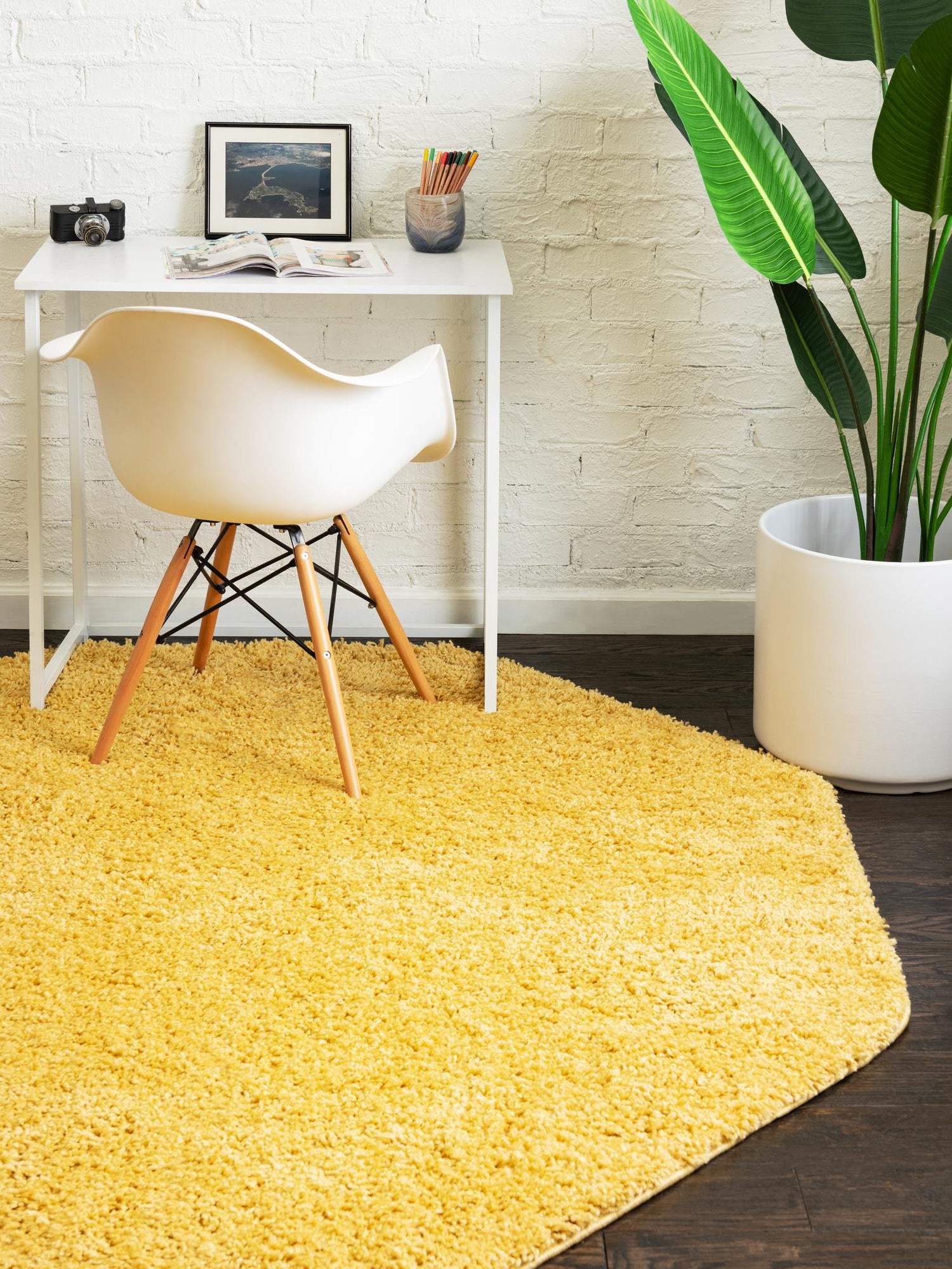 Yellow 6' x 6' Everyday Shag Octagon Area Rug Thick Soft To...