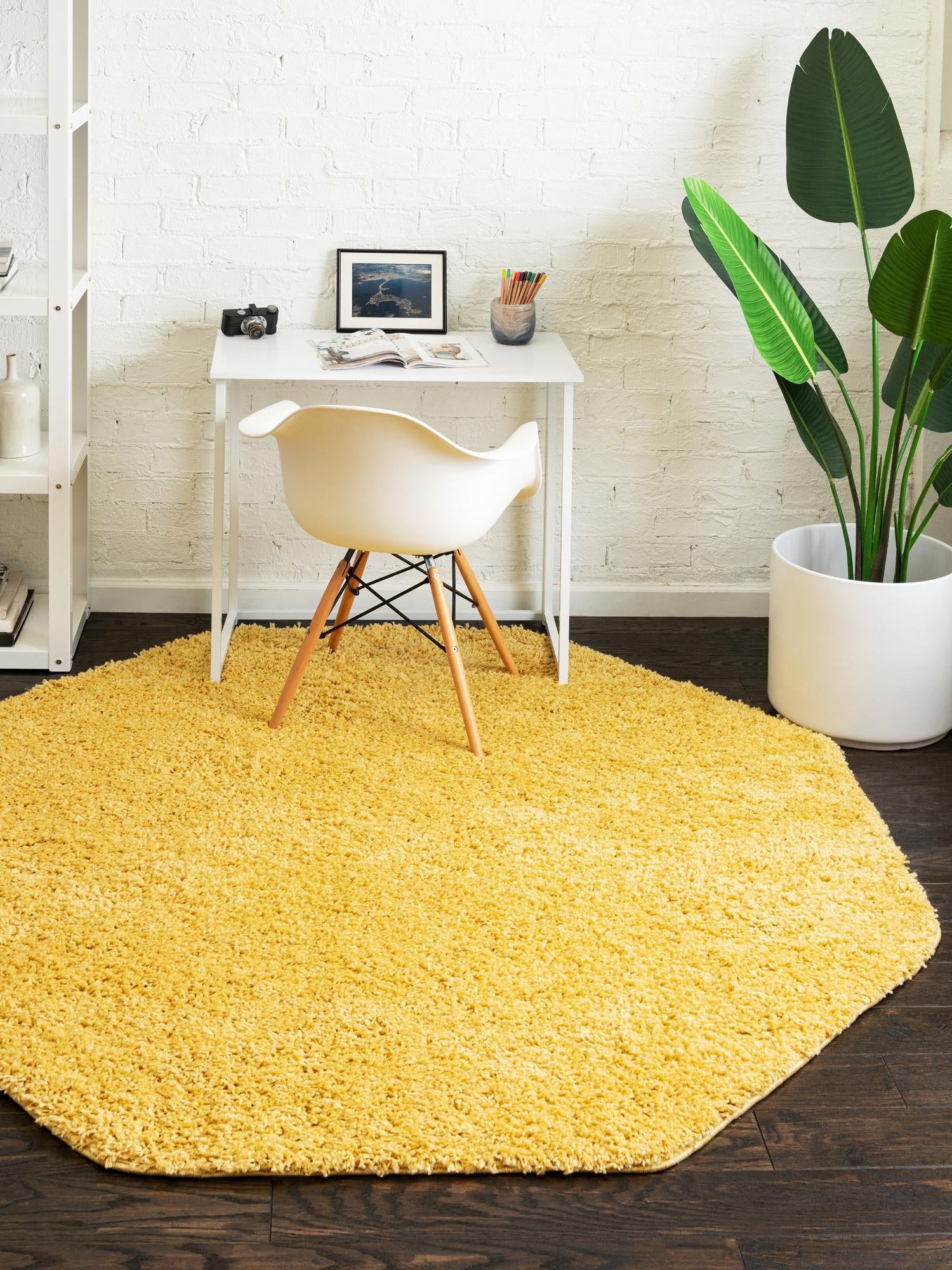 Yellow 6' x 6' Everyday Shag Octagon Area Rug Thick Soft Touch Fluffy & Plush Shaggy Pile 100% Polypropylene With Cotton Backing Durable Carpet