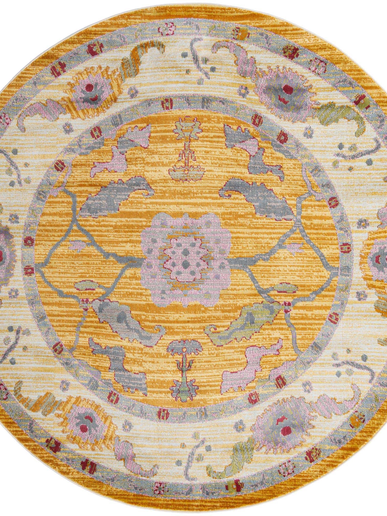 Yellow 8' 2 x 8' 2 Paragon Round Area Rug 100% Polypropylene Colorful Vivid Boho Style Modern Carpet for Unique Interiors