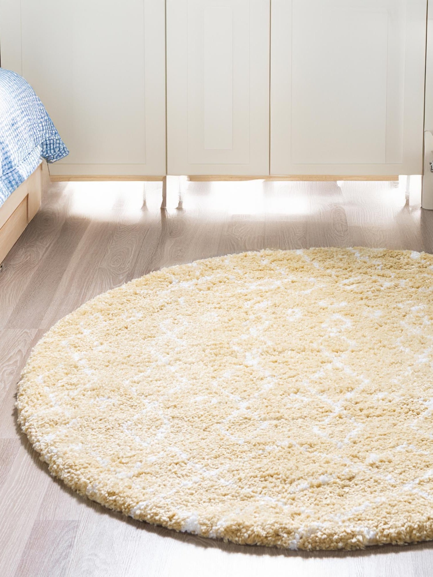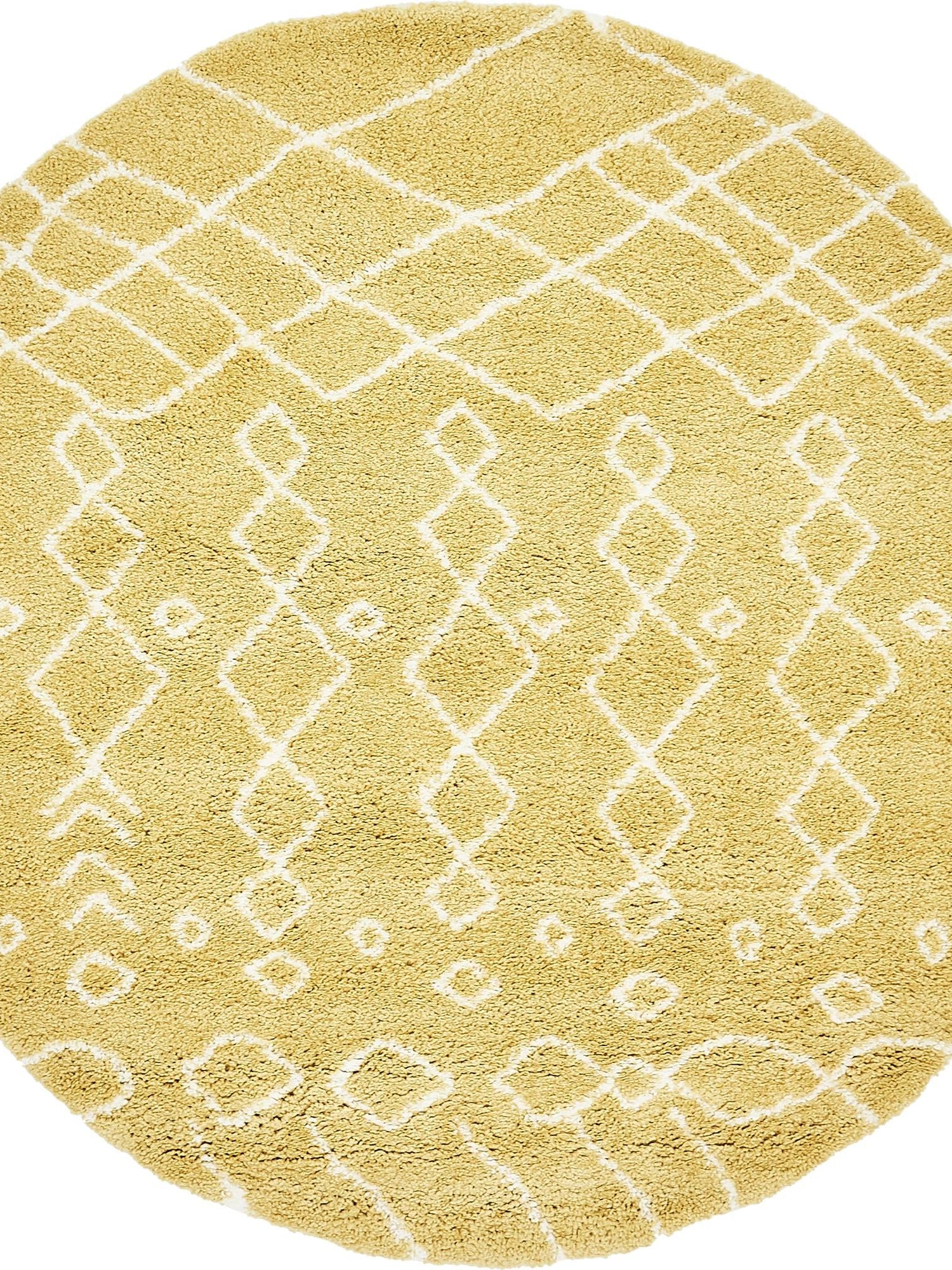 Yellow 8' x 8' Rabat Shag Round Area Rug Thick Soft Touch F...