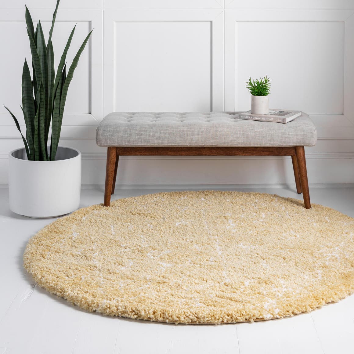 Yellow 8' x 8' Rabat Shag Round Area Rug Thick Soft Touch F...