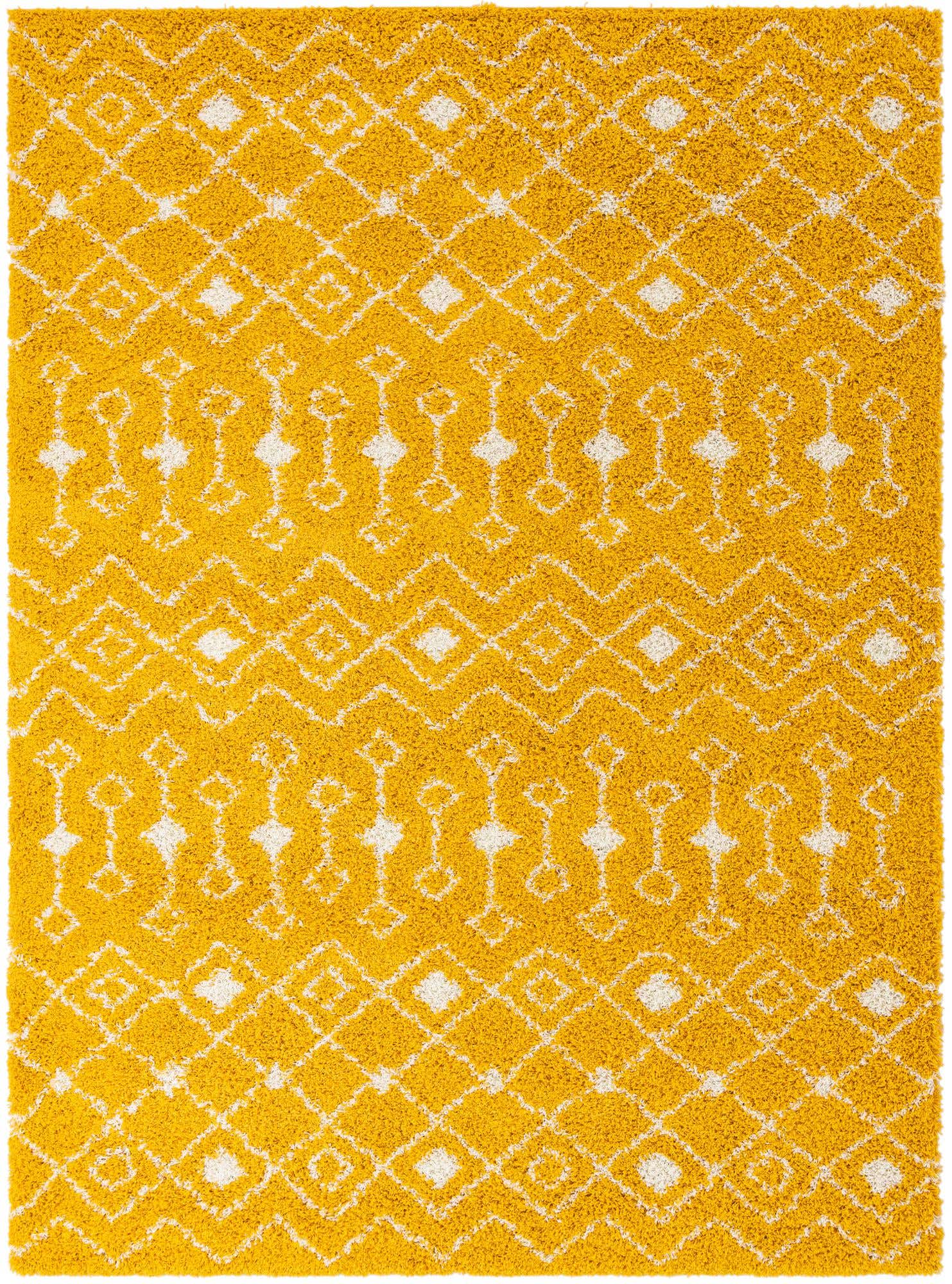 Yellow 9' x 12' Moroccan Trellis Shag Rectangle Area Rug Th...