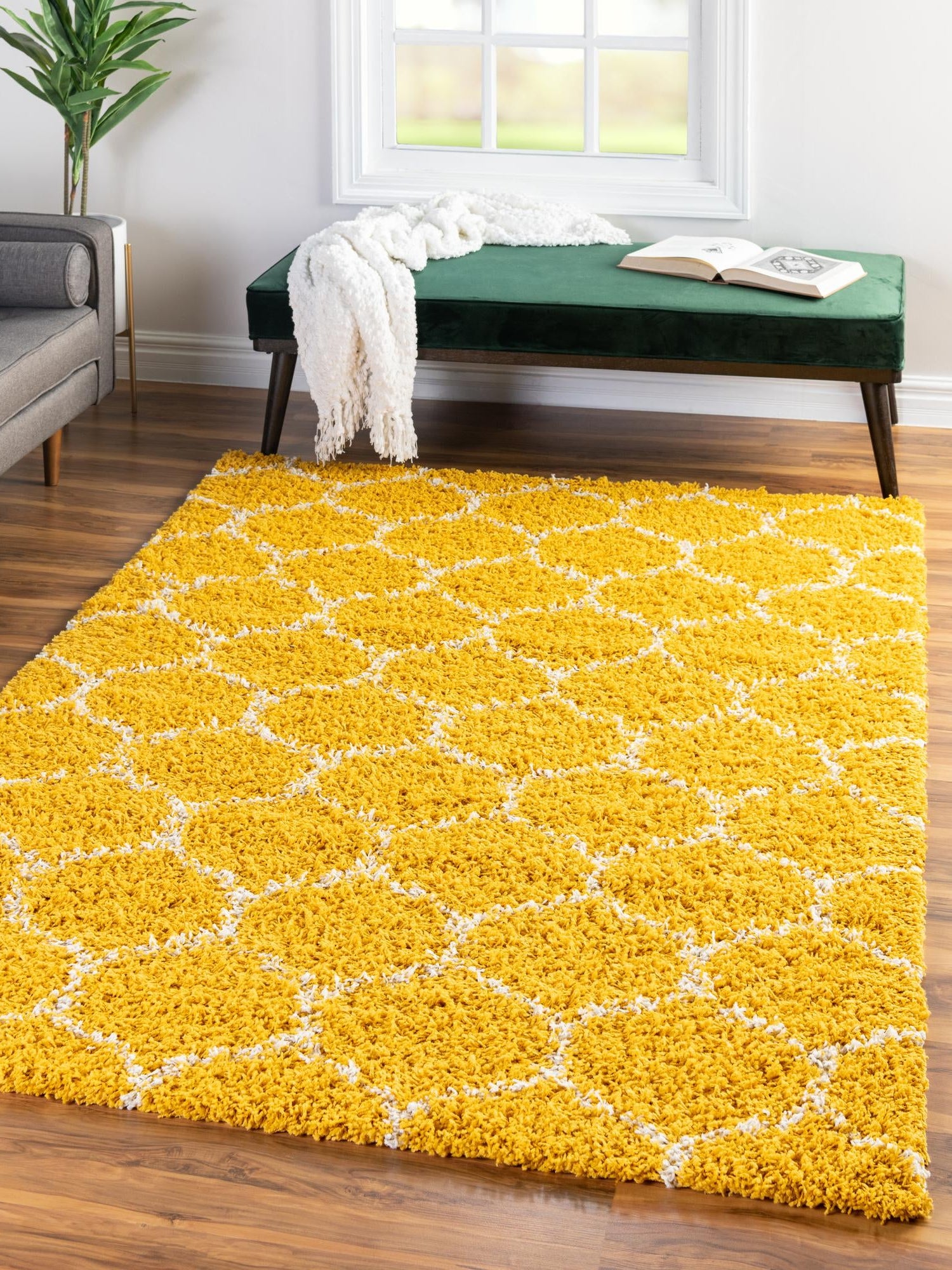 Yellow 9' x 12' Trellis Shag Rectangle Area Rug Thick Soft ...