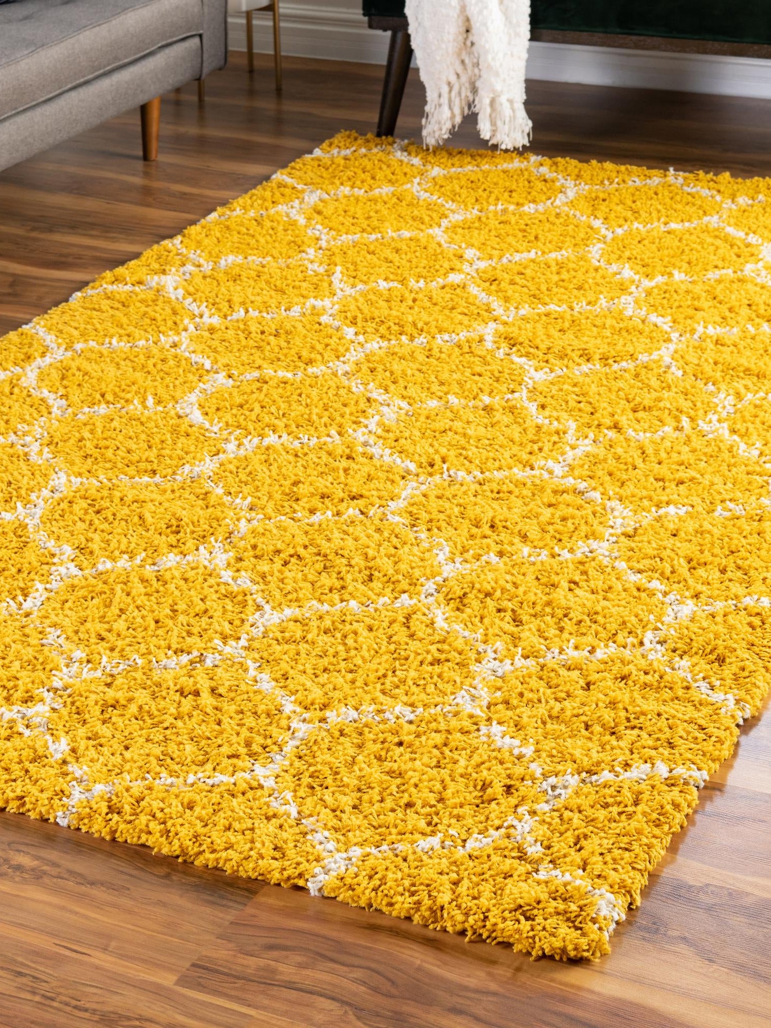- Vibrant Color Choice: The bright yellow hue adds a pop of color to your decor, creating a cheerful and lively atmosphere. This eye-catching color is ideal for modern homes, making a bold statement while complementing various design styles. Illuminate your room with the warmth and positivity that this rug brings.